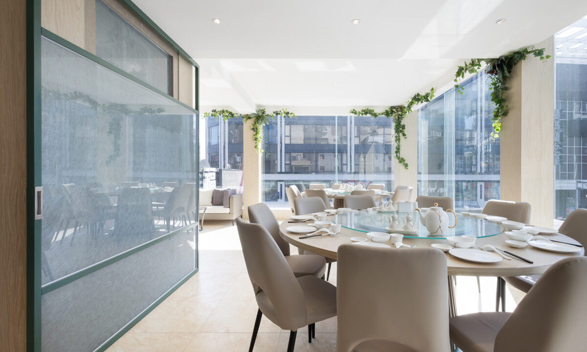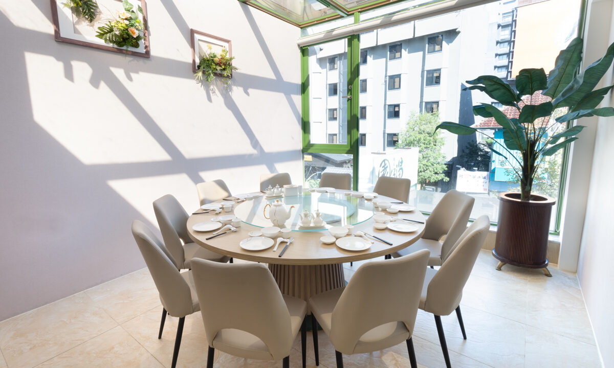自然光灑落、綠意圍繞的玻璃屋空間,讓每一次聚餐都彷彿置身城市綠洲。