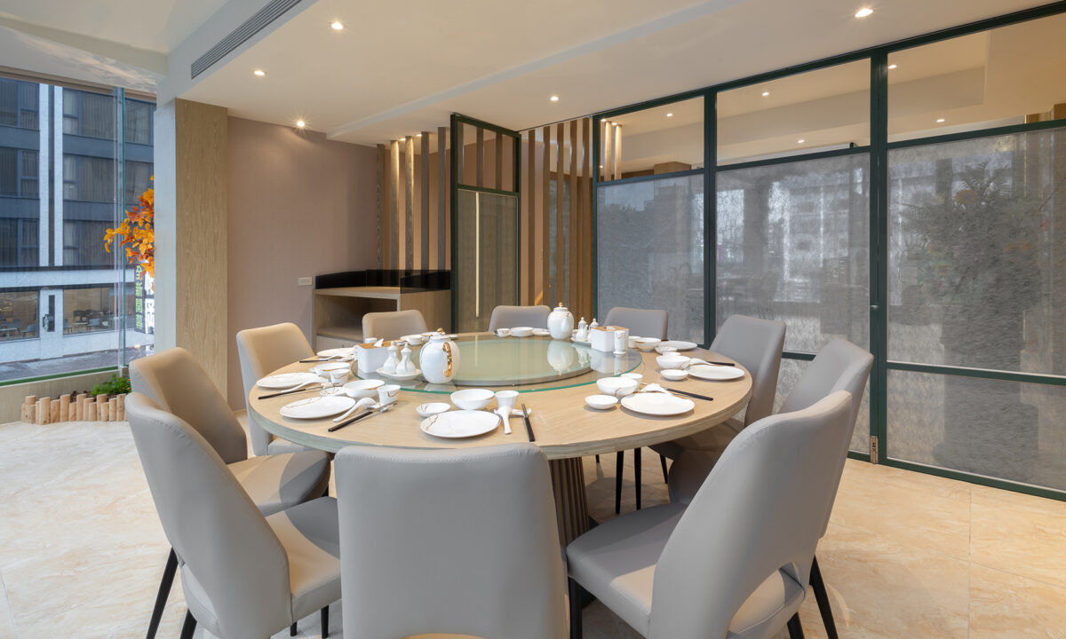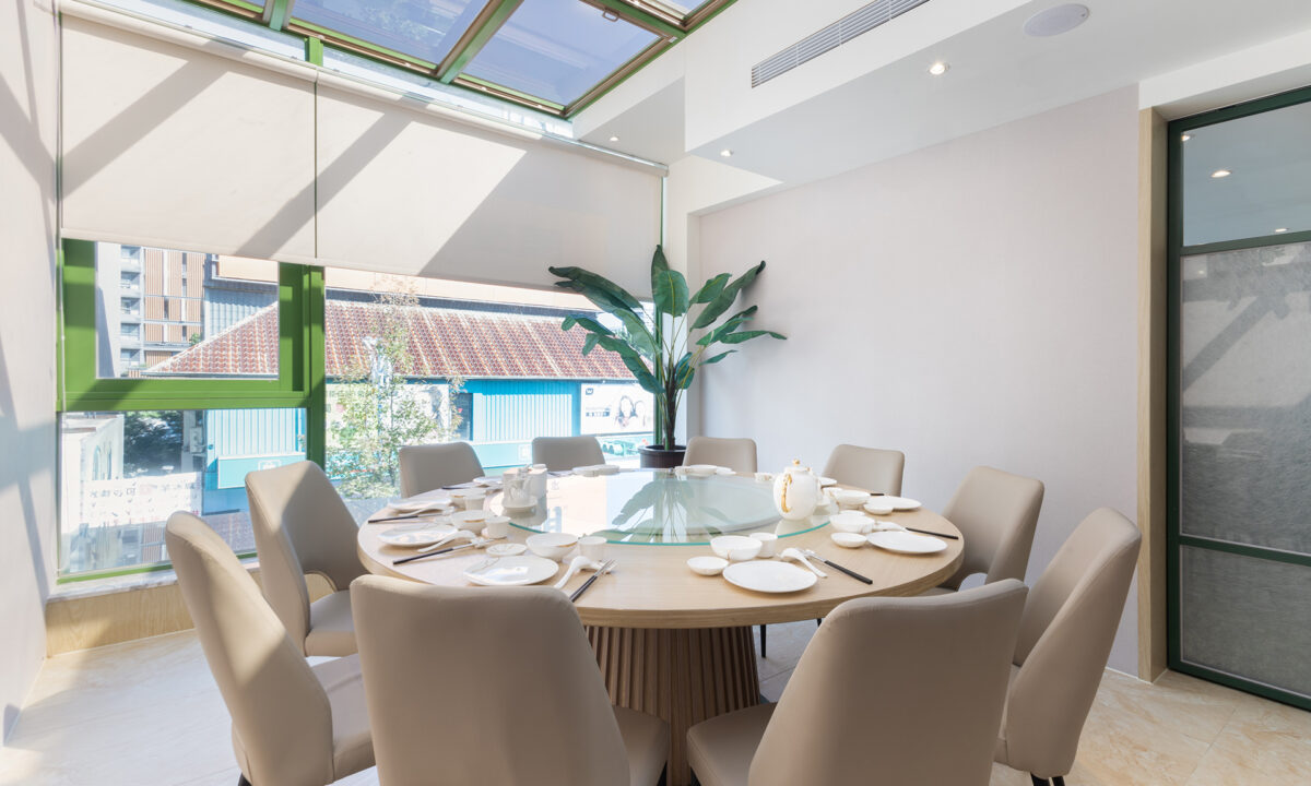 溫潤木質搭配柔光灑落,私密不封閉的設計,打造出適合家庭聚餐、小型慶生、商務聚會的理想空間。